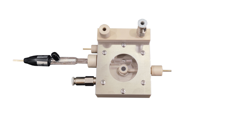 1、兩電極/三電極體系;2、PEEK/PMMA/PTFE/PI材質;3、WE:催化劑負載型碳紙/泡沫鎳;4、RE:氯化銀電極;5、CE:鉑絲電極;6、雙層分別通氣體及液體;7、W.D≤6mm;8、適用于負載型催化劑研究。